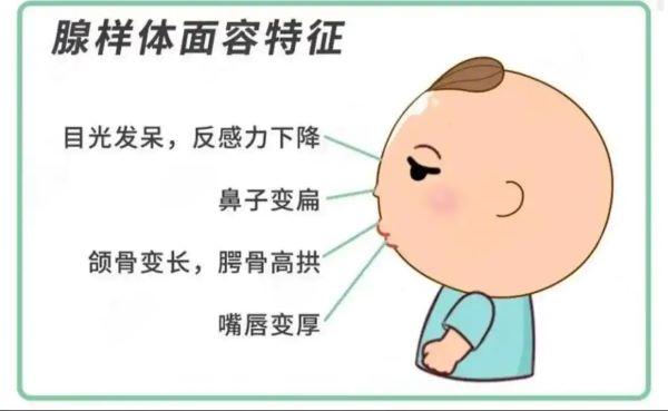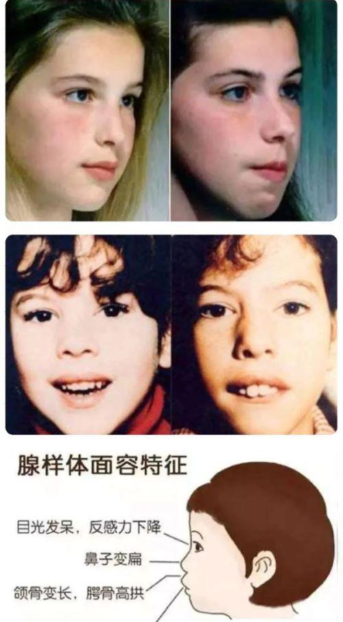當孩子長期用嘴呼吸時,面部骨骼和肌肉會逐漸發生改變,形成一種特殊的面容特征。臨床數據顯示:??約68%的腺樣體肥大患兒會出現面容改變