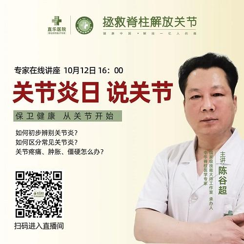 世界骨關(guān)節(jié)炎日,石家莊直樂矯形中醫(yī)醫(yī)院院長陳谷超先生專場直播《關(guān)節(jié)炎日 說關(guān)節(jié)》,10月12日16:00識別海報二維碼進入直播間
